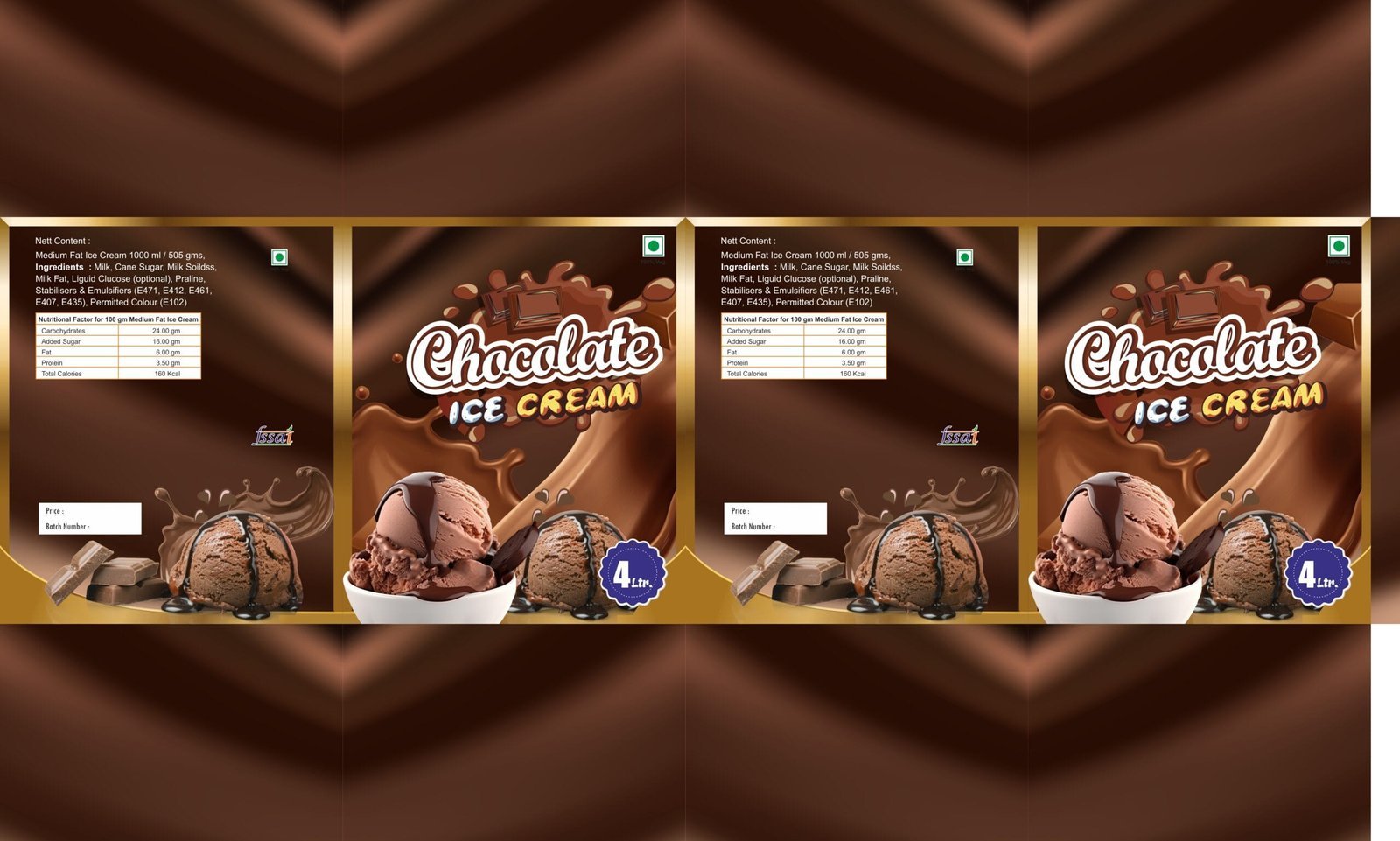 The Chocolate Ice Cream 4 Ltr Pack Design is a professionally crafted packaging template, created with CorelDraw X6 for full customization. This design features an eye-catching layout with rich, chocolate-themed visuals that enhance the product’s appeal. It includes designated spaces for branding, product details, and essential labeling requirements, ensuring compliance with packaging standards. The fully editable CorelDraw X6 file allows easy modifications, enabling businesses to personalize colors, fonts, images, and text elements to match their brand identity. Ideal for ice cream manufacturers and distributors, this packaging design ensures a premium and attractive presentation on store shelves.
