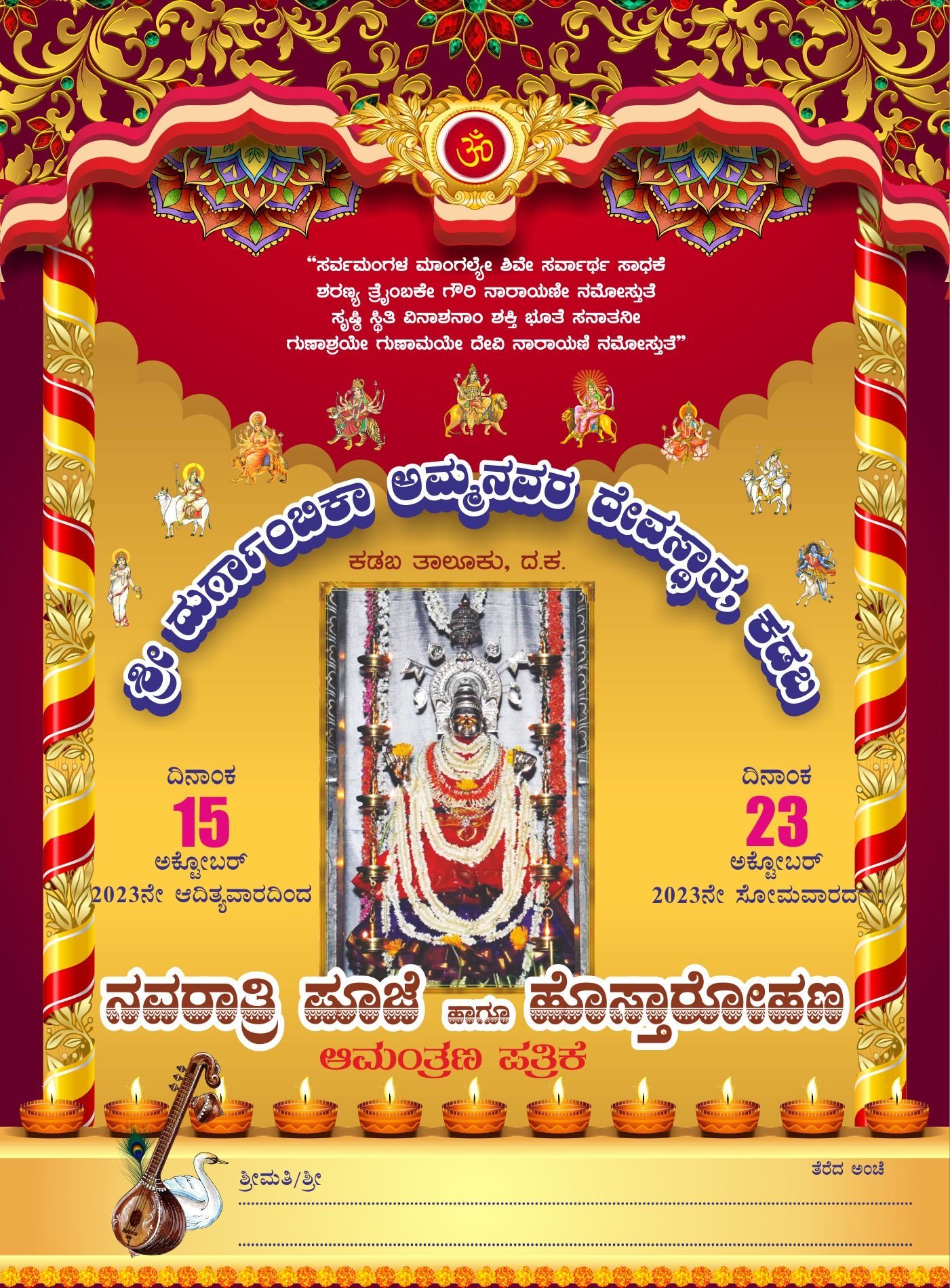 Navarathri Invitation Open File CorelDraw X6 Format 7X9.5 Size, Fully Editable. You can add your data to this design.
